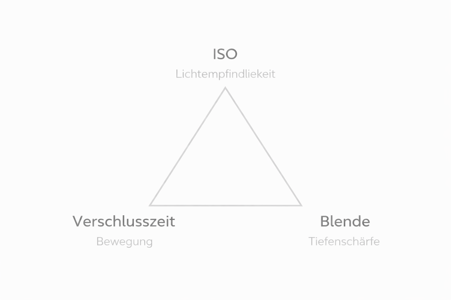 Man nennt sie auch das „Belichtungsdreieck“. Sie arbeiten immer zusammen. Veränderst du eine Einstellung, beeinflusst das automatisch die anderen.